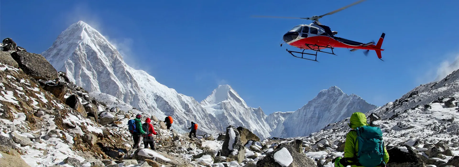 We will arrange a helicopter flight from Gorakshep to Lukla to Kathmandu . However, our service excludes the emergency rescue and evacuation service cost by helicopter. So please make sure to take out insurance that will cover your urgent helicopter evacuation cost in Nepal.