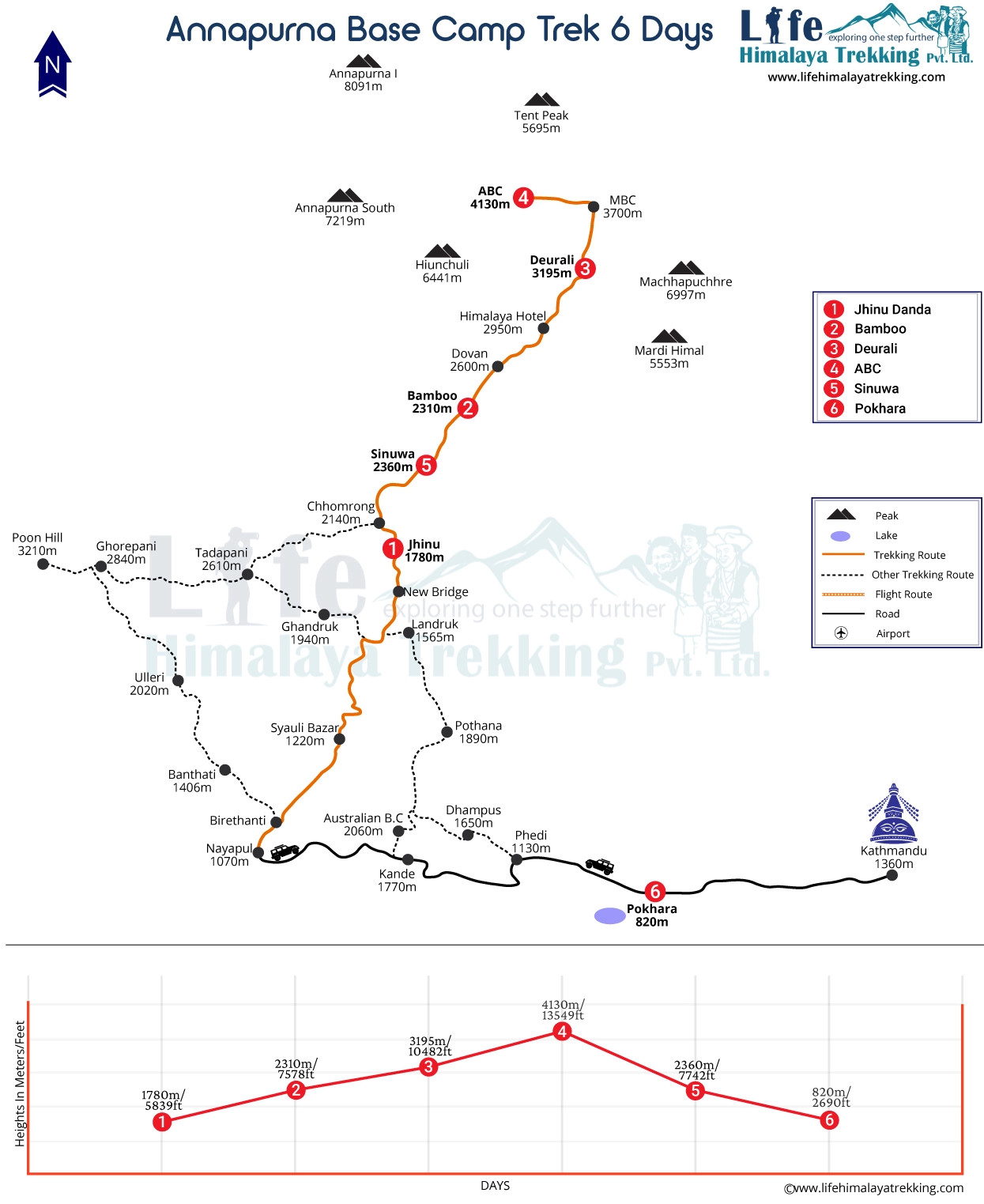 6 Days Annapurna Base Camp Trek Route