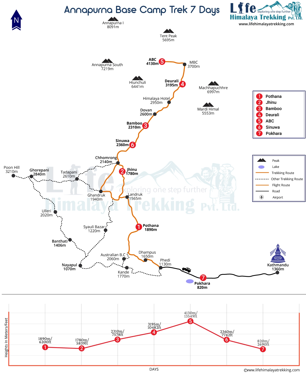 7 days Annapurna base camp trek is one of the adventurous journey towards the lap of world 10th highest mountain Mt. Annapurna (8,091 m). Annapurna base Camp situated at height 4,130 m above the sea level and also surrounded by the giant snowcapped peaks. 7 days ABC trek will give you the most memorable and thrilling adventure at Nepal’s largest conservation area; Annapurna conservation area. Our 7 days package to Annapurna base camp package will fulfill your trekking in very short days and after finishing Base camp trek you can join other adventurous programs.
