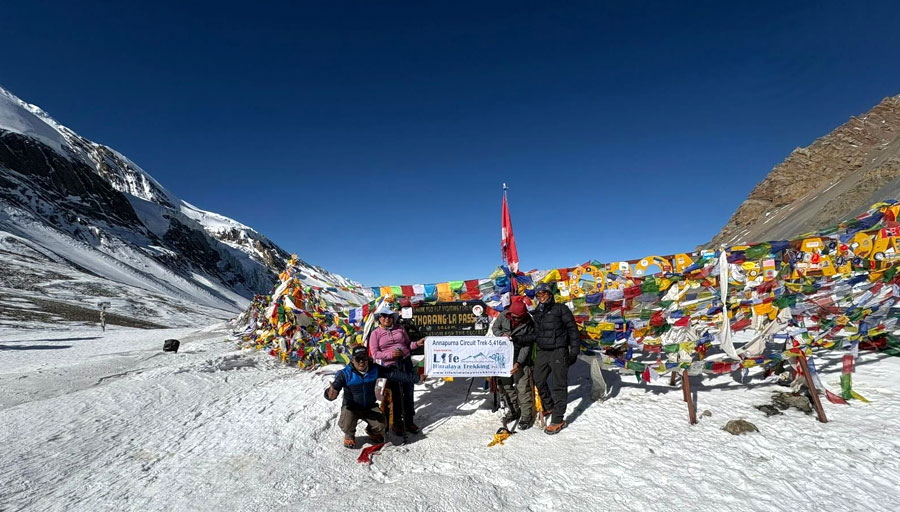 Reaching the Thorong La Pass is an ecstatic feeling, an overwhelming feeling that can’t be described in words, and can’t be seen through photos and videos of other travellers; it has to be felt when you walk the trail. It can only be felt when you are there, and then only can we comprehend what we have achieved in the Luxury Annapurna Circuit Trail.